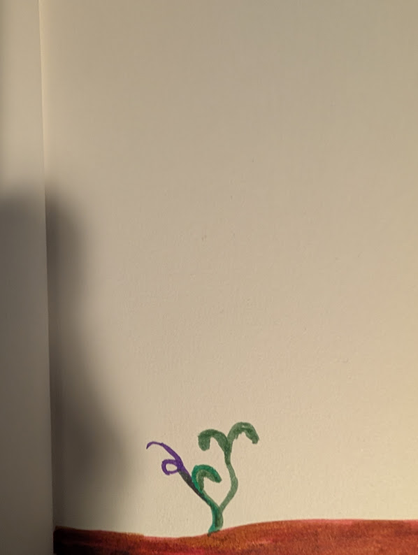 Alcyone: wow, it's growing fast! Three leaves and a... purple tendril?