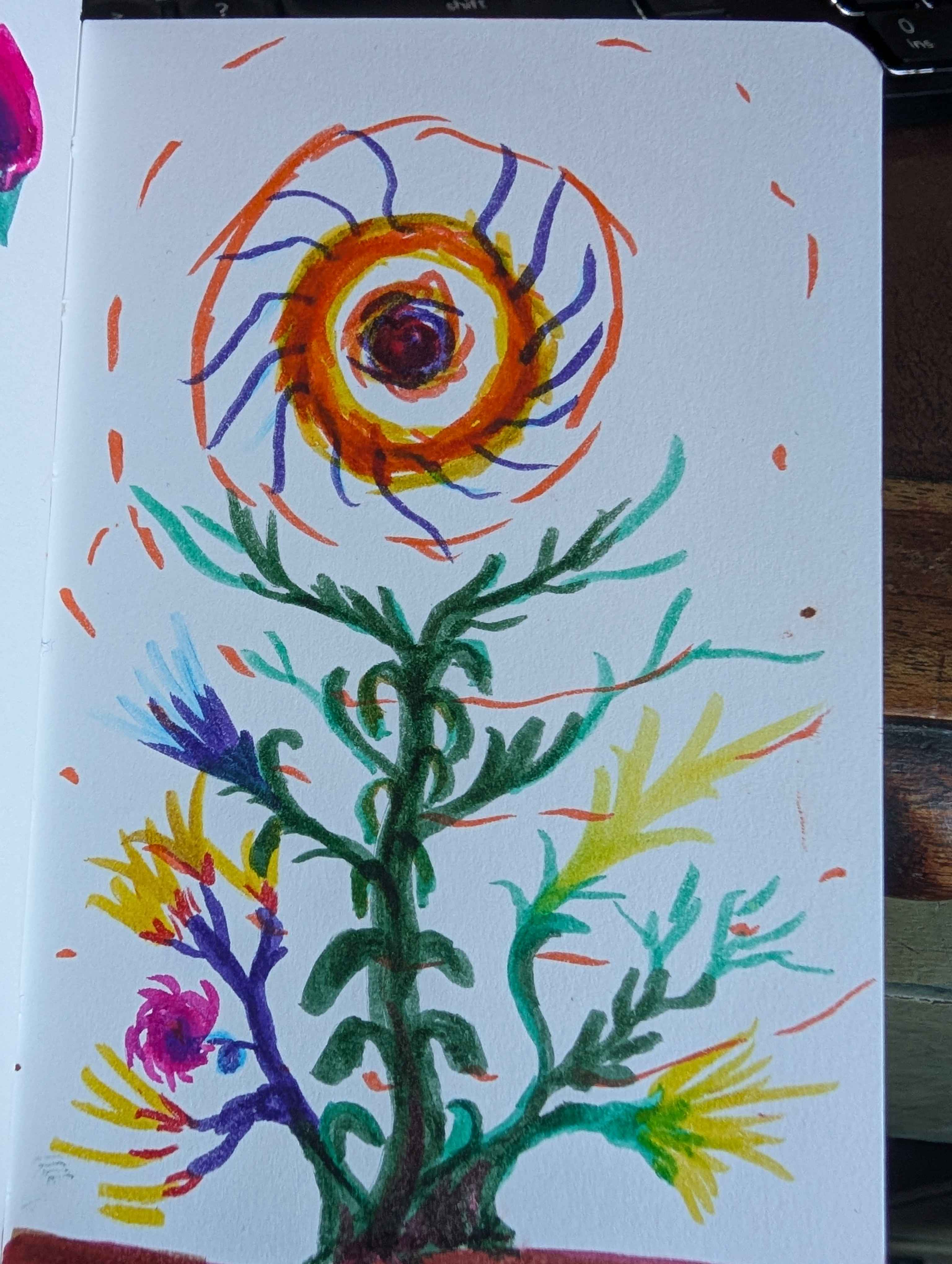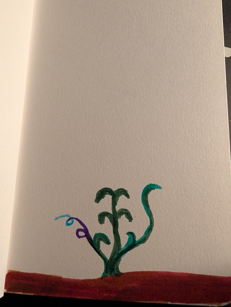 Alcyone: At first glance, the plant seems like it might simply be several plants grafted together, each plant from a different species. But as you look more closely you see that even down to the leaf every part is different, each leaf has a wildly different pattern of veins, and there is something slightly off about each one, as though created by someone who had heard a second-hand explanation of what a leaf looks like.