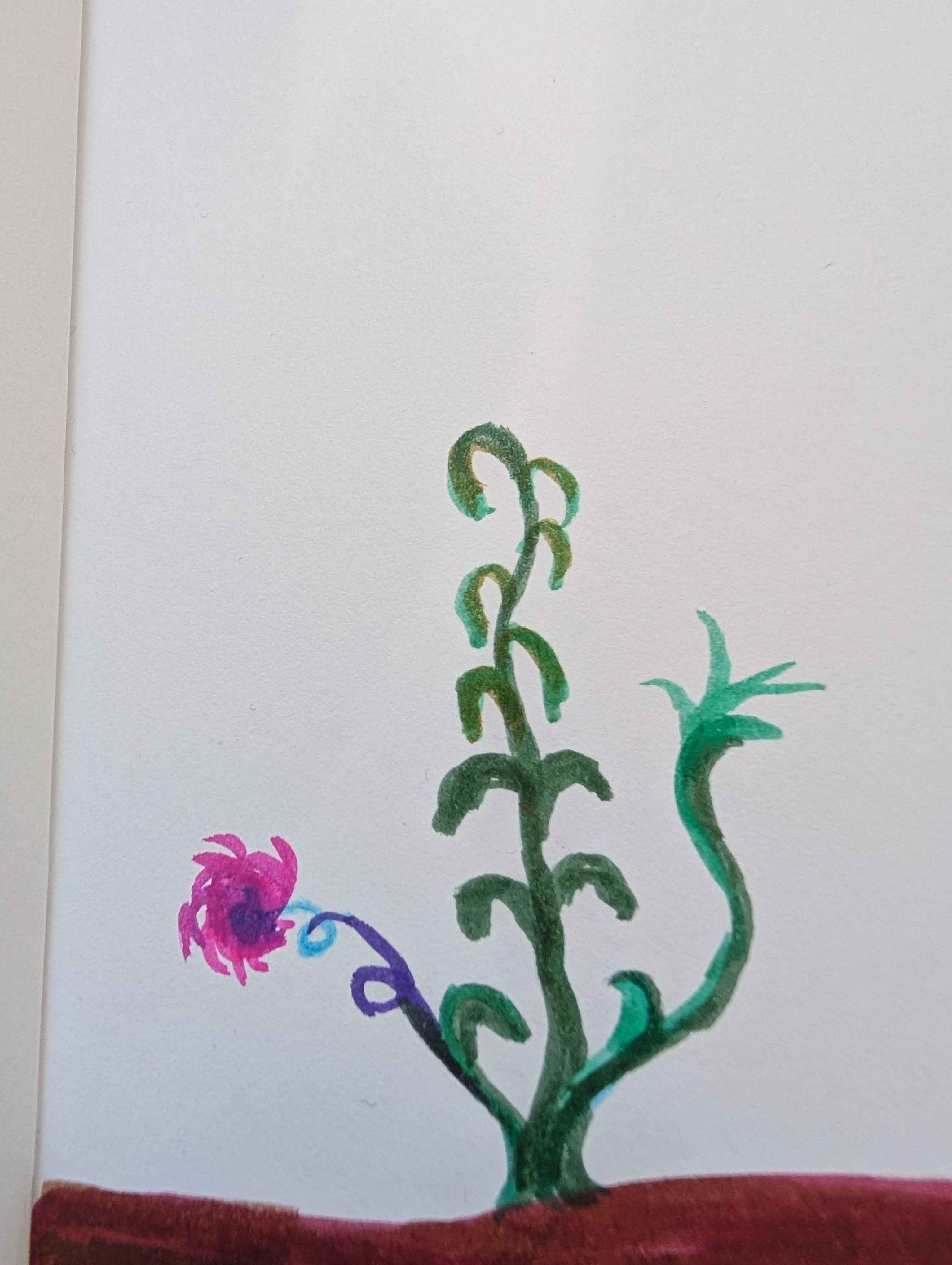 Grash A plant sitting close suddenly blooms. A flower extends itself in the direction of Cabral.